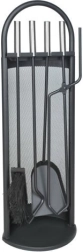 Viss pa rokai: knaibles, lāpstiņa, birste, āķis/pokers un stabils statīvs kārtīgai uzglabāšanai un ātrai piekļuvei, apkalpojot kamīnu.