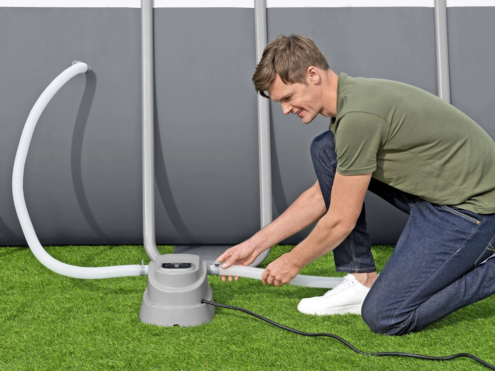 Uzstādīšana ir vienkārša – sildītāju viegli pievienojat baseina filtrēšanas sistēmai. Ierīce paredzēta virszemes baseiniem ar tilpumu 1 520–17 035 l un sūkņa plūsmai līdz 3 785 l/h. Maksimālā temperatūra ir 40 °C (sasniedzama atkarībā no ievades ūdens temperatūras un apkārtējās vides). Izturīga konstrukcija un garš 3,5 m barošanas kabelis atvieglo novietošanu un lietošanu.