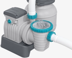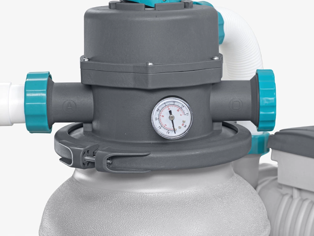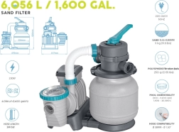 Sūknis ar jaudu 6056 l/stundā palīdzēs ātri noņemt netīrumus no jūsu baseina. Filtrēšanai nepieciešams izmantot filtra pildvielu – vai nu kvarca smiltis (0,45–0,85 mm), vai veiktspējīgās filtra bumbiņas POLYSPHERE.