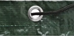 Pateicoties auklām un cilpām, pārsegu var stingri nostiprināt, lai to neaizpūstu vējš. Nodrošina vienkāršu un efektīvu stiprinājumu.