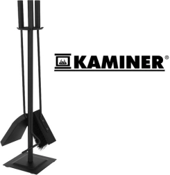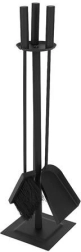 Elegantais 4-vienā kamīna piederumu komplekts ērtai kamīna, krāsns, grila un ugunskura apkalpošanai. Satur kurkuli, lāpstiņu, birsti un stabilu statīvu ar pretbuksēšanas kājiņām. Izturīga nerūsējošā tērauda konstrukcija ar matētu melnu pārklājumu noslēpj sīkus skrāpējumus un netīrumus un piešķir interjeram tīru, modernu izskatu.