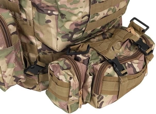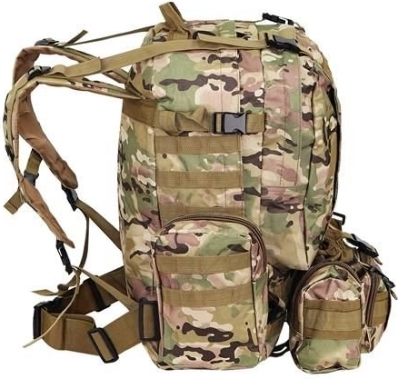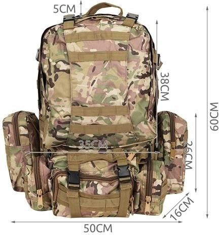 Liels militārais mugursoma 45 l piedāvā 2 galvenās kameras ar papildu nodalījumiem un trīs noņemamas kabatas, kas nodrošina pietiekami daudz vietas visam jūsu aprīkojumam. Tā ir izgatavota no Oxford 900D auduma, kas garantē izturību pret plīsumiem un nodilumu. Iekšējā PVC odere palielina ūdensizturību, savukārt elpojošais siets uz siksnām un muguras daļas uzlabo ventilāciju.
