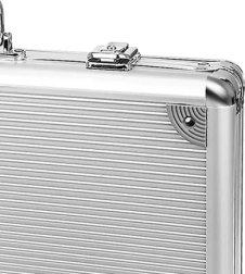 - Izturīgs alumīnija koferītis ar slēdzamu mehānismu un ergonomisku rokturi
