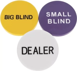 DEALER, SMALL BLIND un BIG BLIND žetoni nodrošina pārskatāmus raundus un vienmērīgu katras partijas gaitu.