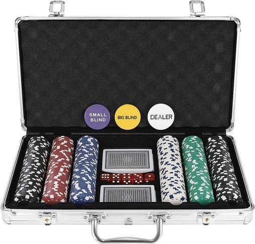 - 300 žetonu ar metāla serdeni reālistiskai spēles sajūtai