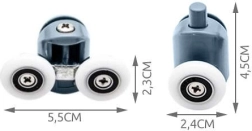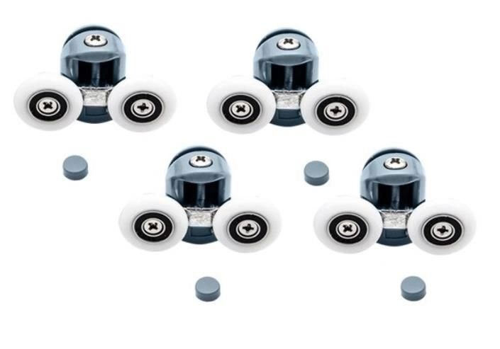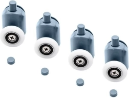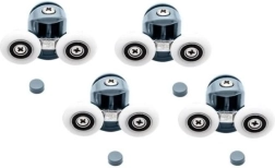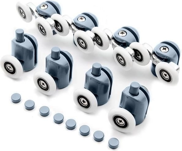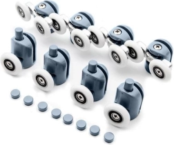 Nomainiet nolietotās vai ķerasošās sliedes un atjaunojiet vienmērīgu un drošu dušas durvju atvēršanu. Komplektā ir augšējie dubultie un apakšējie viengabala, izvelkami/ātri atvienojami riteņiņi ērtai apkopei un tīrīšanai. Universāla konstrukcija ar lodīšu gultņiem pielāgojas vadotnes formai un novērš durvju izlekšanu no vadības.