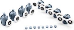 - 4× augšējie dubultie riteņiņi, 4× apakšējie viengabala riteņiņi (izvelkami/atvienojami), 8× vāciņi