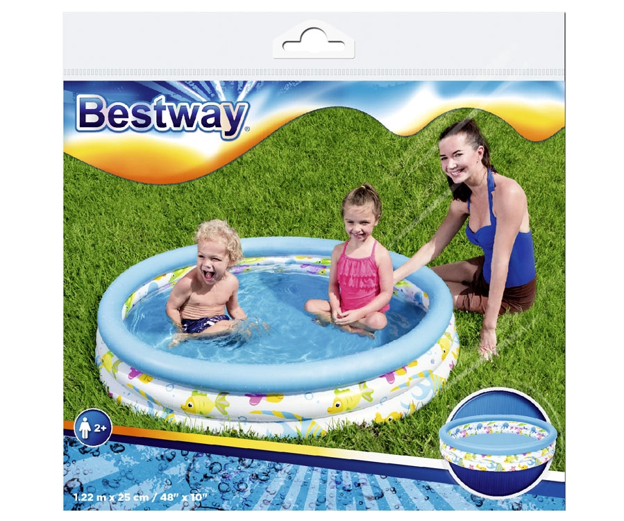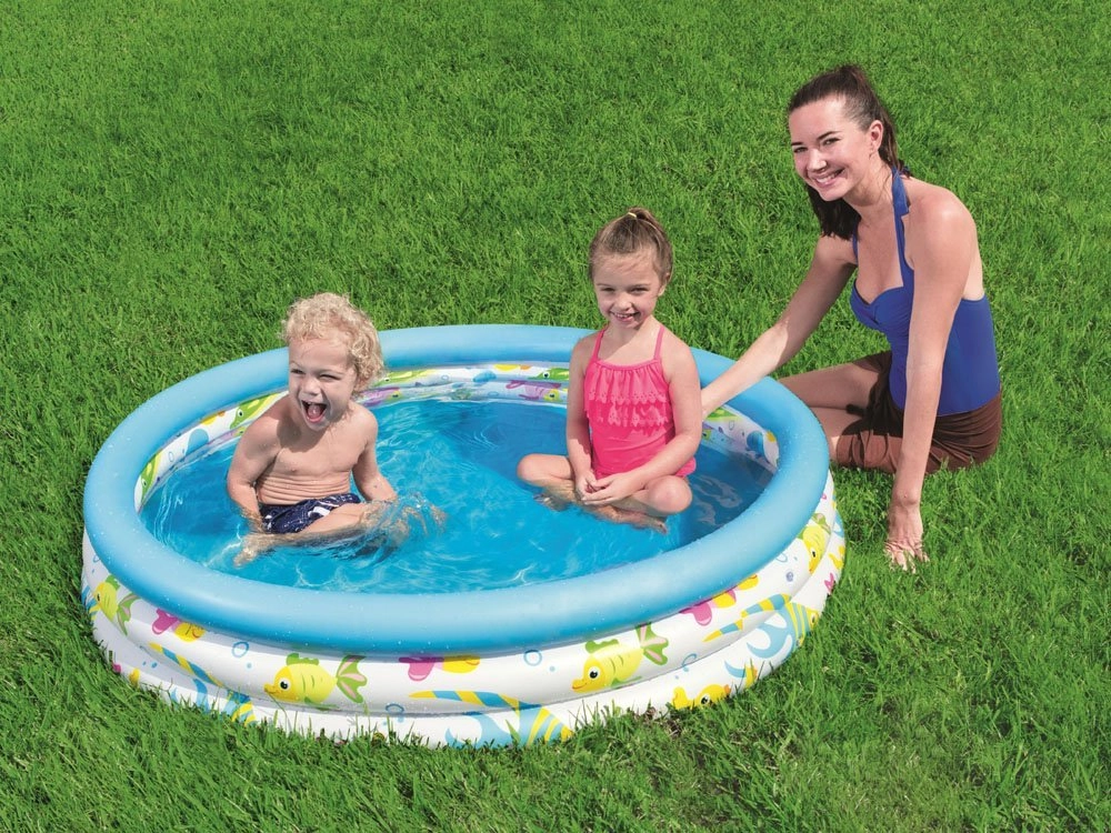 Uzpūšamais bērnu baseins BESTWAY ar izmēriem 122 × 25 cm ir lieliska izvēle pirmajām ūdens rotaļām. Caurspīdīgās sienas ar jautru jūras dzīvnieku motīvu rosina iztēli un aicina bērnus droši rotaļāties ārā. Pateicoties mīkstajam, bet izturīgajam PVC, baseins ir noturīgs pret plīsumiem un gatavs vairākām sezonām.