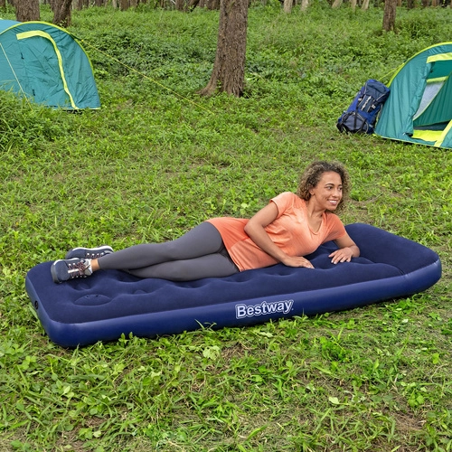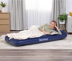 Vienvietīgais uzpūšamais matracis BESTWAY Air Mattress Jr. Twin ir ideāli piemērots nakšņošanai mājās un kempingā. Tas piedāvā ērtu miegu, izturīgu coil-beam konstrukciju, integrētu spilvenu un iebūvētu kājpumpi ātrai uzpūšanai jebkur. Augšējā daļa no mīksta vinila nodrošina patīkamu saskari un vienkāršu kopšanu.