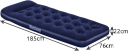 Izbaudiet komfortablu atpūtu mājās, vasarnīcā vai teltī. Uzpūšamais matracis BESTWAY Air Mattress Jr. Twin apvieno stabilu iekšējo coil-beam konstrukciju ar patīkamu vinila virsmu, kas ir mīksta pieskārienam un viegli tīrāma. Pateicoties integrētajam spilvenam, jums ir ērts galvas atbalsts bez papildu spilvena.