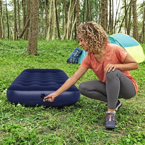 Praktiskā iebūvētā kājpumpe ļauj ātri uzpūst bez elektrības, bet divvirzienu slēdzamais vārsts atvieglo gan piepildīšanu, gan arī strauju izlaidi. Kompakti izmēri un izturīgs materiāls padara to par uzticamu izvēli gan viesiem, gan ceļojumiem.