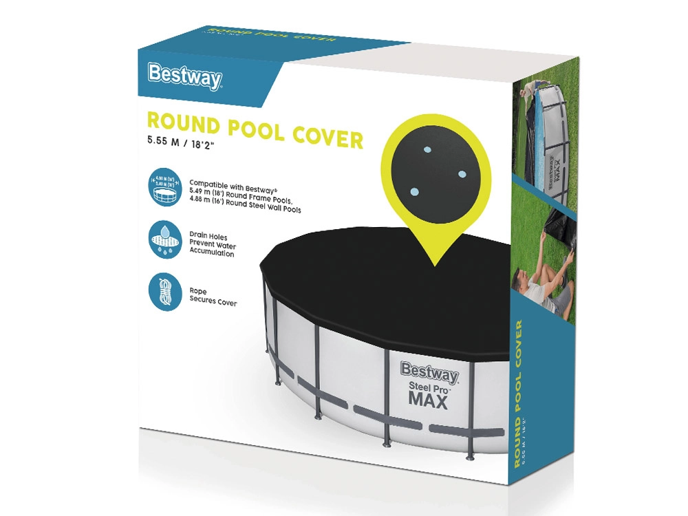 Bestway aizsargpārsegs ir izstrādāts, lai nodrošinātu optimālu aizsardzību jūsu baseinam. Pateicoties izturīga un stingra materiāla izmantošanai, pārsegs kalpo daudzām sezonām. Stipras fiksācijas auklas nodrošina, ka pārsegs paliek savā vietā arī vējainos laikapstākļos, savukārt novadcaurumi efektīvi novada lieko ūdeni.