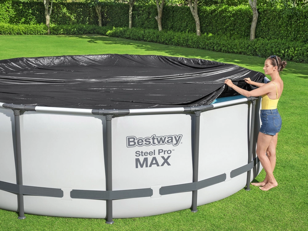 Bestway baseinu aizsargpārsegs pasargā jūsu baseinu no netīrumiem, piemēram, kukaiņiem, lapām un viegla lietus. Tas piešķir papildu izolācijas slāni ūdens temperatūras uzturēšanai un nodrošina drošību pret nejaušu iekrišanu baseinā.