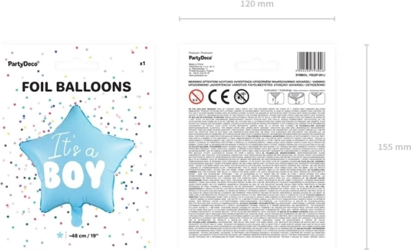 Folijas balons zvaigzne “It’s a boy” gaiši zilā krāsā 48 cm
