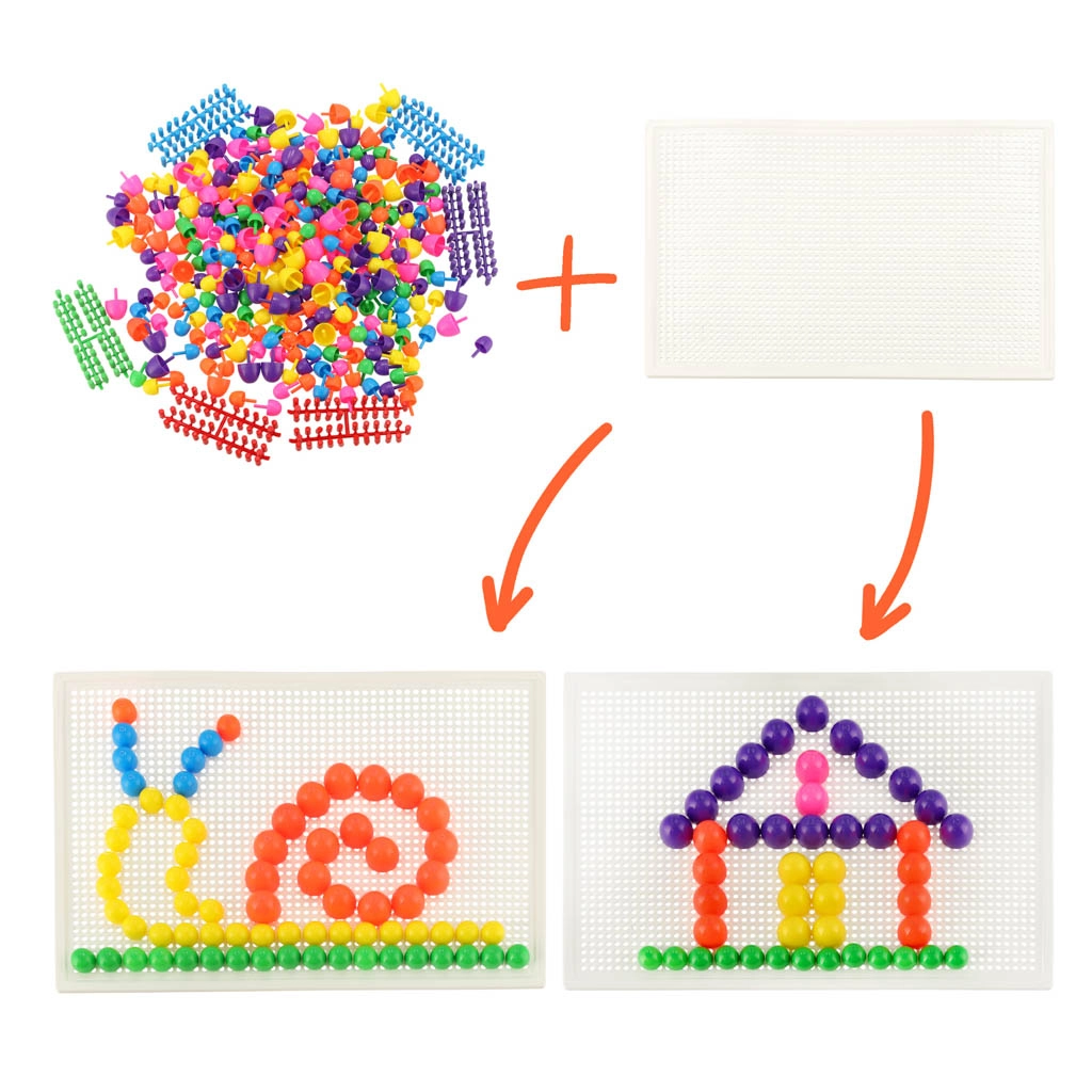 Ienirstiet radīšanas pasaulē ar Maģiskajām mozaīkām, kur iztēle kļūst par realitāti. Uz pievienotās plāksnes ar daudziem caurumiem varat izvietot krāsainus dažādu izmēru gabaliņus un veidot brīnišķīgus rakstus un attēlus. Kad pabeidzat vienu ilustrāciju, vienkārši izņemiet gabaliņus un sāciet veidot kaut ko jaunu.