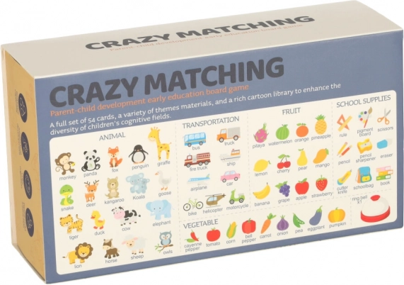 Ienirstiet ātro refleksu pasaulē ar spēli Crazy Matching, kas sniedz prieku visai ģimenei. Spēle ir pilna spriedzes: spēlētājiem pēc iespējas ātrāk jāatrod atbilstošs attēls uz kartītēm. Pirmajā spēles režīmā diviem spēlētājiem tiek izdalītas visas kārtis, un katrā raundā jābūt pirmajam, kas atrod sakritību starp divām kartīm. Uzvar tas, kuram beigās ir visvairāk kāršu.