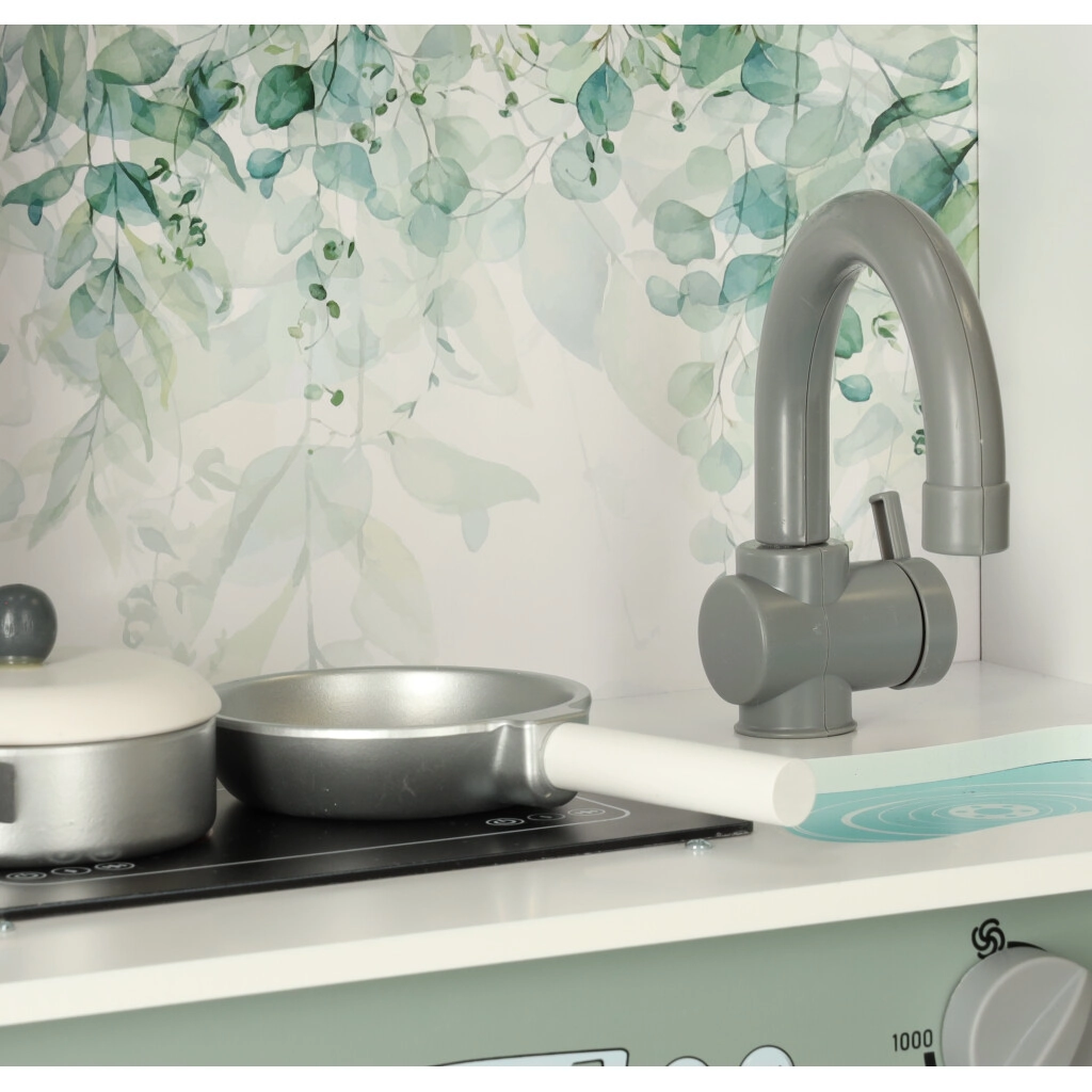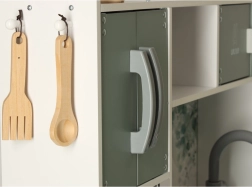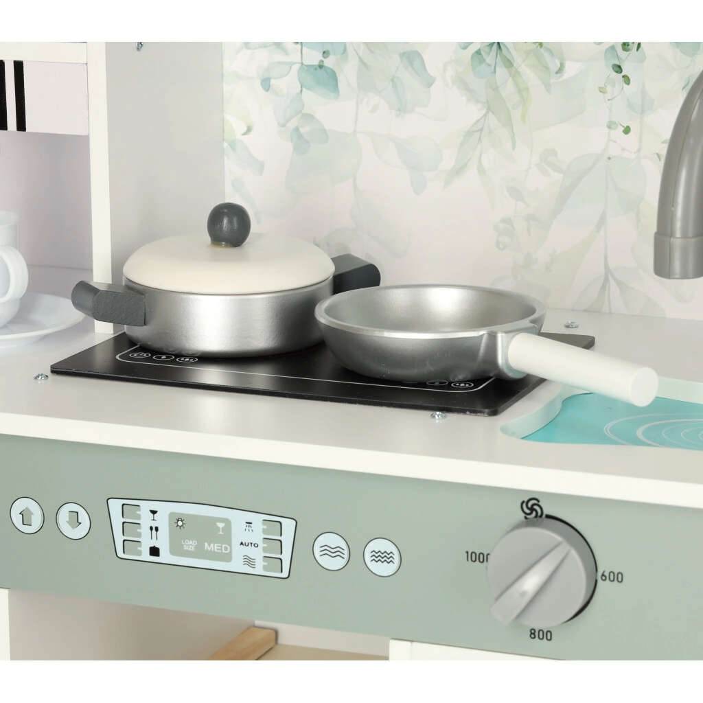 Virtuvītē ir iekļauta mikroviļņu krāsns, veļas mašīna, cepeškrāsns un kafijas automāts, kas ļauj bērniem izpētīt un atdarināt īstus virtuves darbus.
