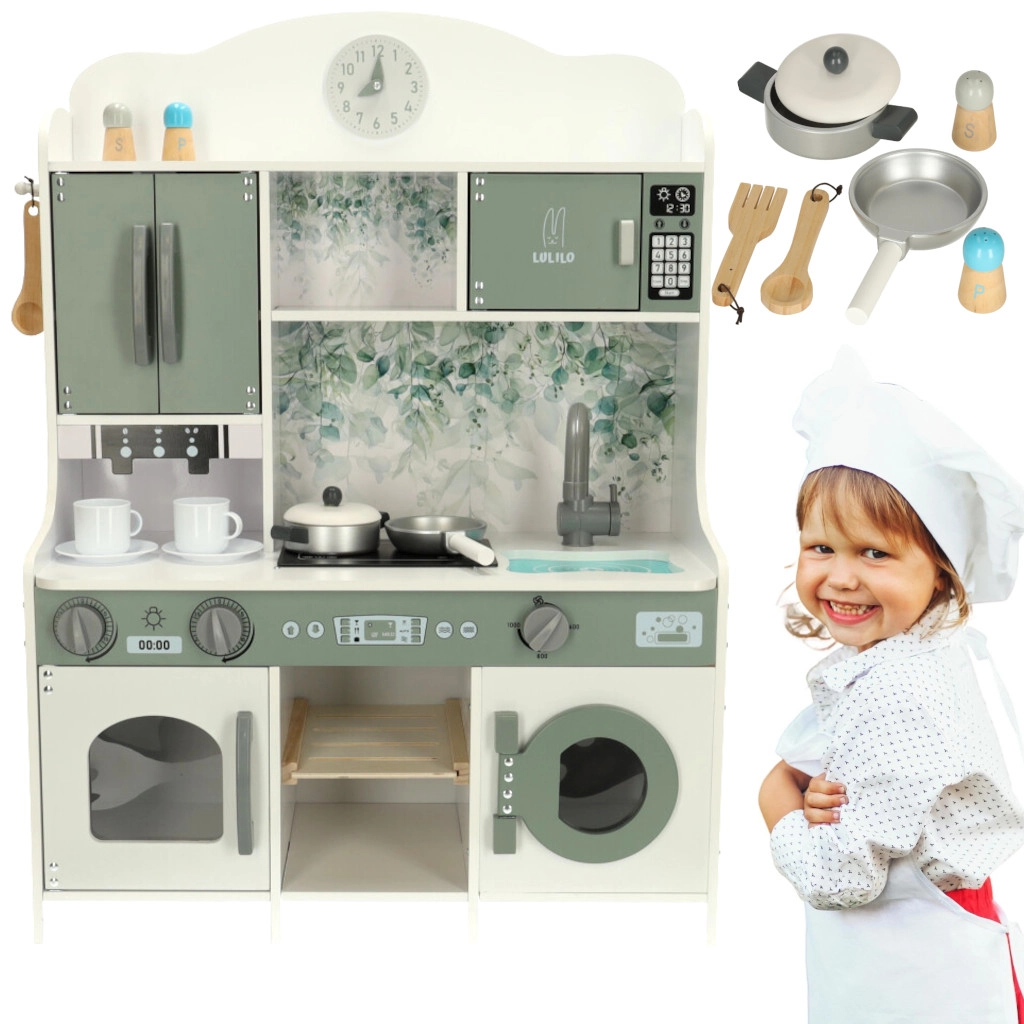 Izbaudiet virtuves valstības burvību ar koka bērnu virtuvīti Lulilo Saliko. Bērniem patīk atdarināt pieaugušos, un šī virtuvīte sniedz telpu, kur attīstīt radošās un praktiskās iemaņas. Ar reālistiskām funkcijām, piemēram, mikroviļņu krāsni un kafijas automātu, viņi kļūs par galvenajiem pavāriem savās mājās.