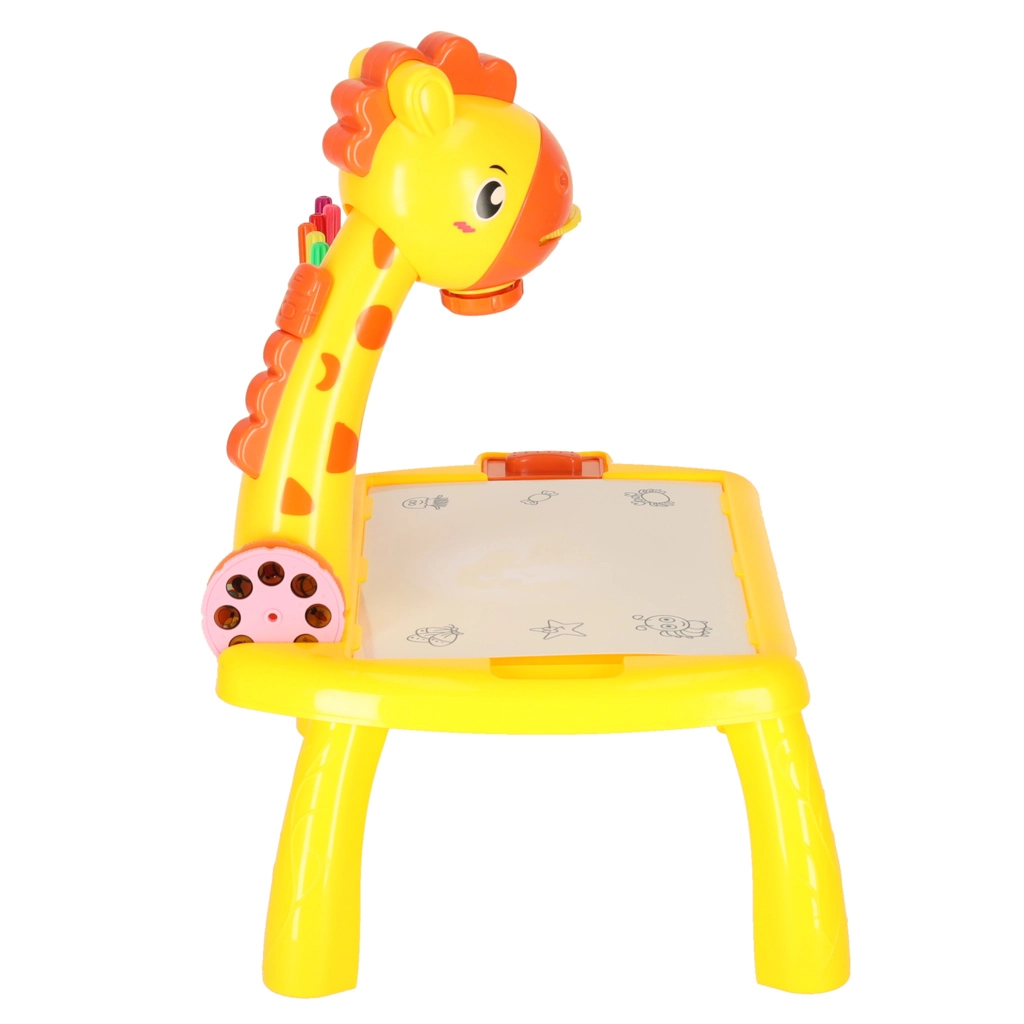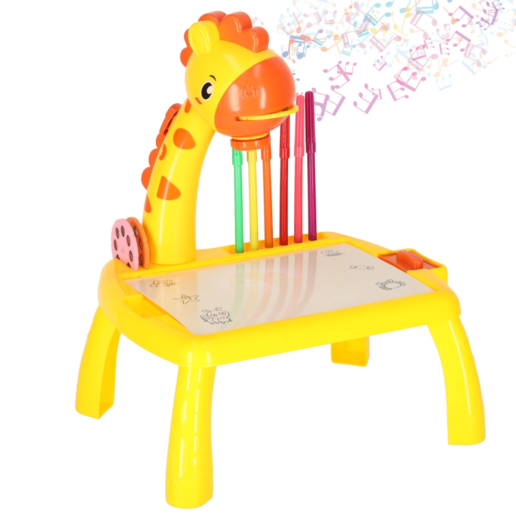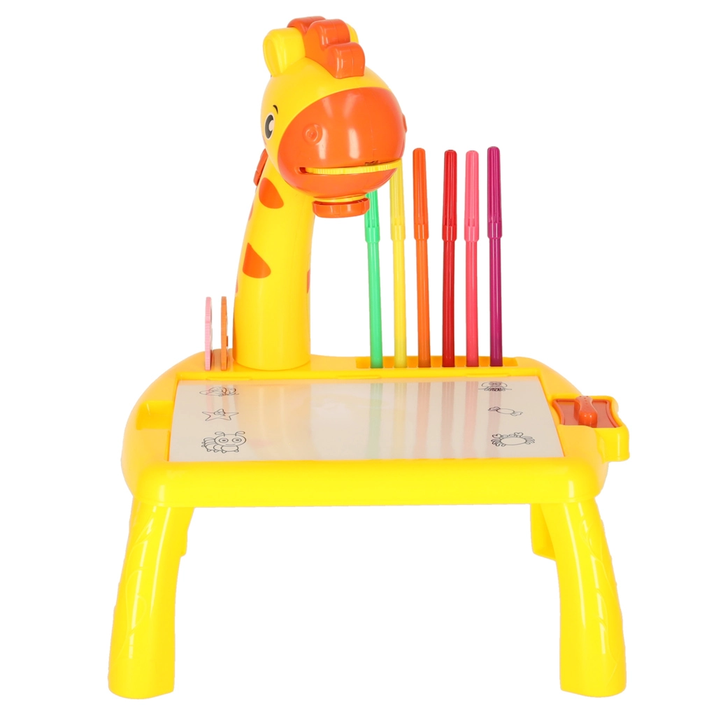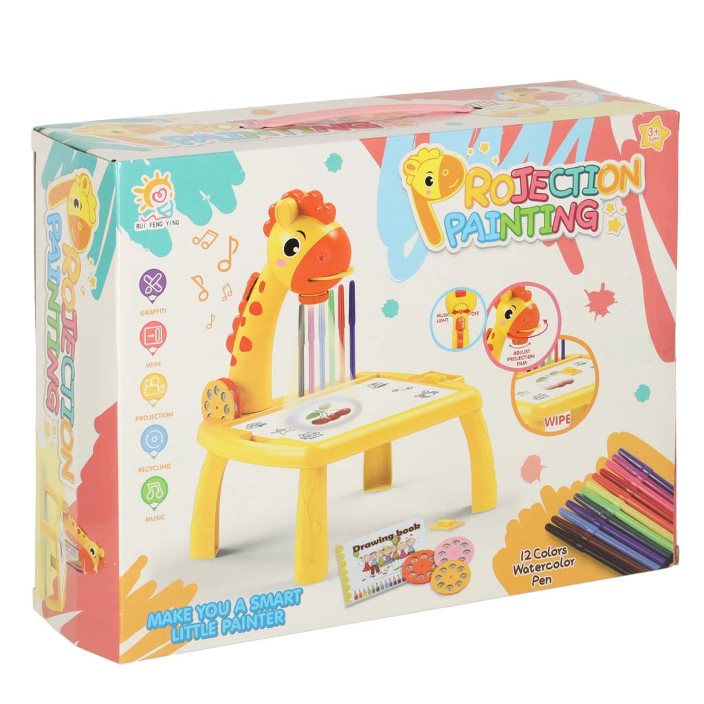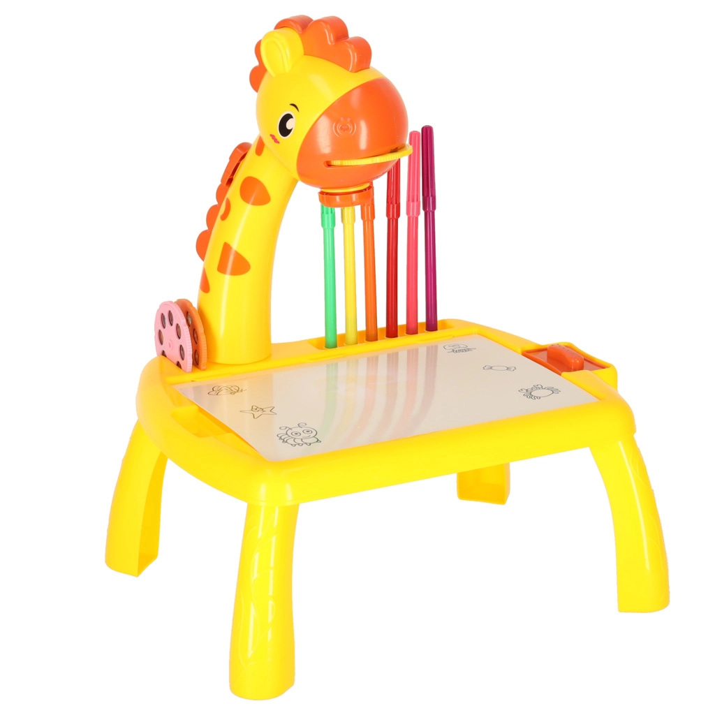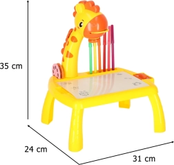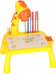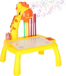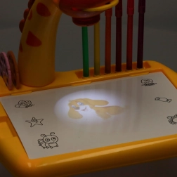 Atklājiet jautru veidu, kā iemācīt bērniem zīmēt! Dzeltenais žirafes projektors projicē attēlus uz papīra, lai bērni tos varētu pārzīmēt. Komplektā ir krāsaini flomāsteri, trīs maināmi diski ar motīviem un noslaukāma pamatne. Lielisks palīgs, lai attīstītu radošumu, sīko motoriku un precizitāti – ideāli bērniem no 3 gadu vecuma.