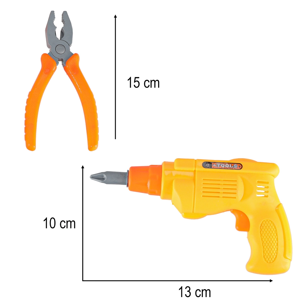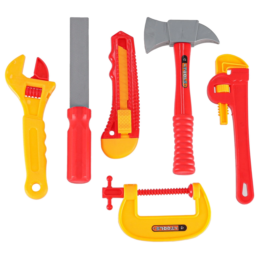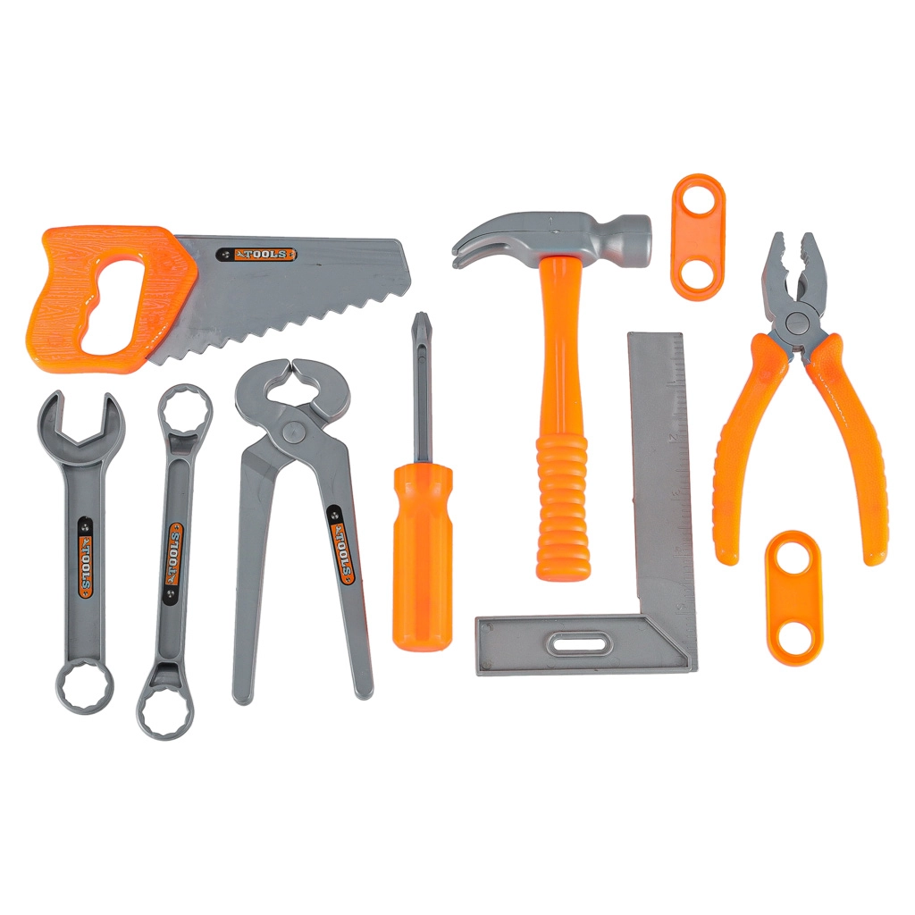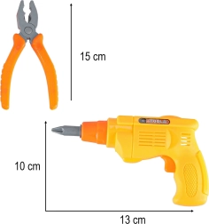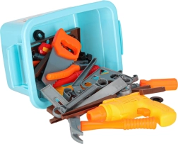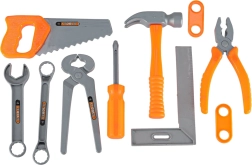 Bērni rotaļīgā veidā trenē sīko motoriku un koordināciju: skrūvēšana, zāģēšana, sitieni ar āmuru un griešana ar zāģi. Viss pielāgots bērnu rokām un izgatavots no kvalitatīvas, vieglas un izturīgas plastmasas maksimālai drošībai.