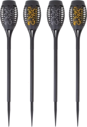 Komplektā ir 4 gab. lampu, tāpēc viegli iezīmēsiet celiņu vai izgaismosiet atpūtas zonu. Ass zemes smaile nodrošina ātru un stabilu stiprinājumu. Izturīgais plastmasas korpuss ir ideāli piemērots āra apstākļiem.