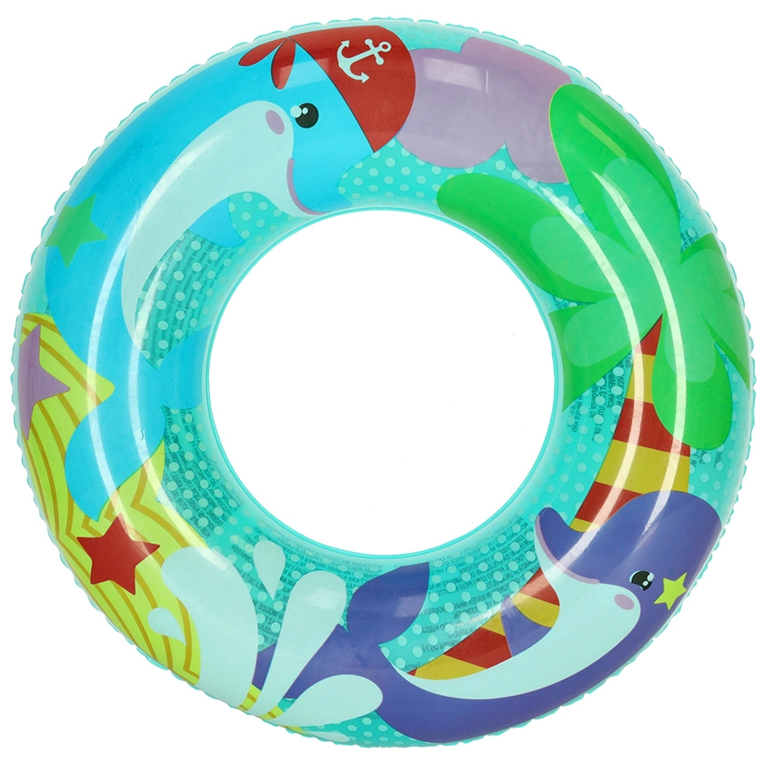 Krāsainais dizains ar delfīnu mudina bērnus droši rotaļāties ūdenī un veicina pārliecību peldot.