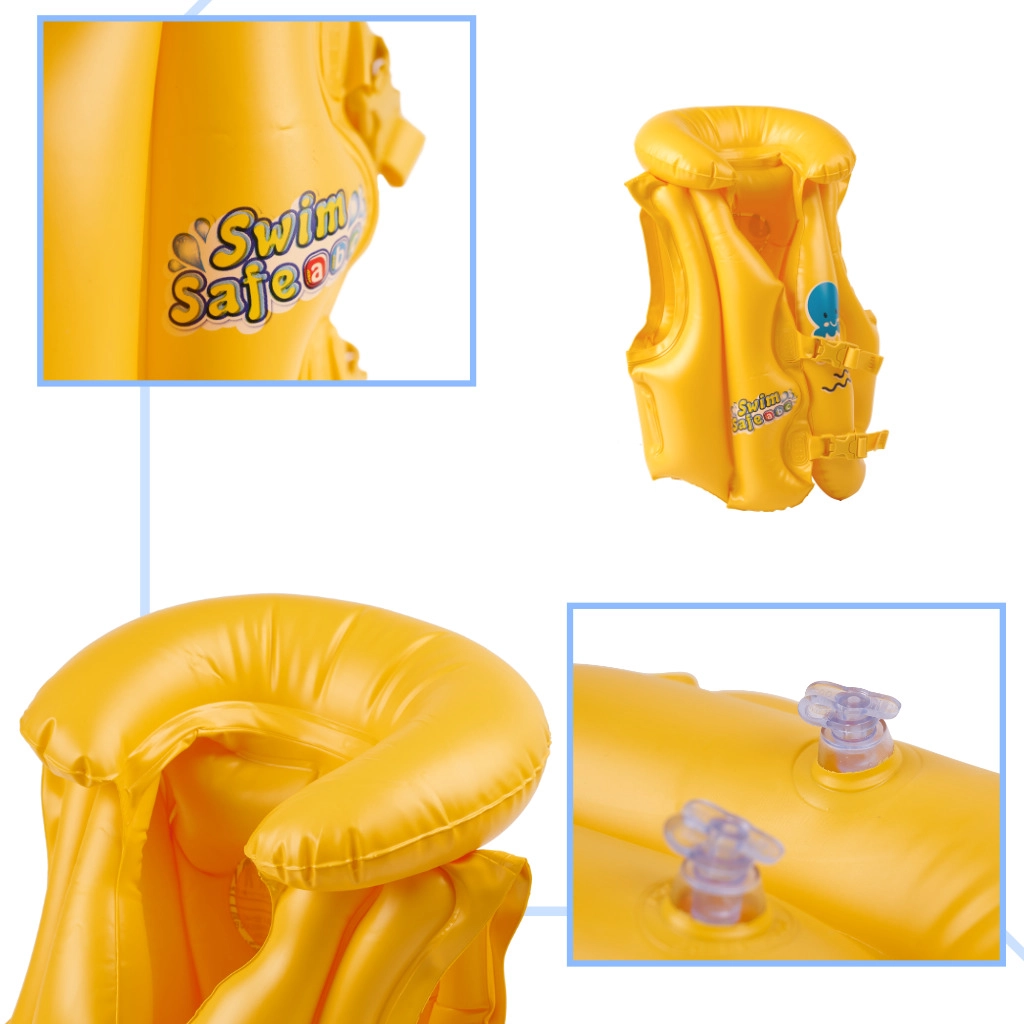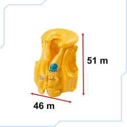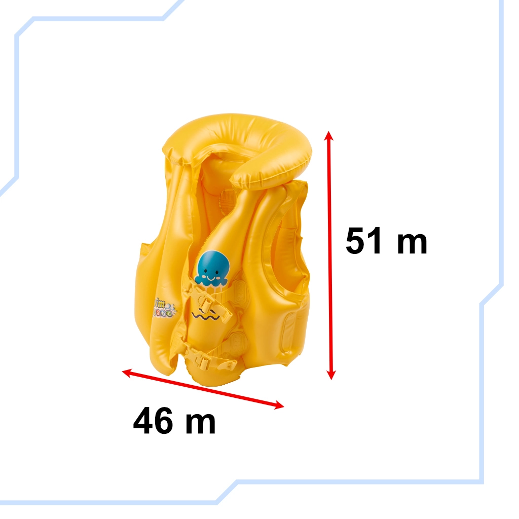 Šī piepūšamā veste ir ideāls palīgs bērniem no 3 līdz 6 gadiem, kuri apgūst peldēšanu. Tā piedāvā trīs kameras piepūšanai, kas palielina drošību peldēšanas laikā – pat bojājuma gadījumā vienā kamerā veste saglabā peldspēju. Spilgti dzeltenā krāsa nodrošina labu redzamību ūdenī, bet regulējamās plastmasas sprādzes ļauj viegli pielāgot piegulšanu.