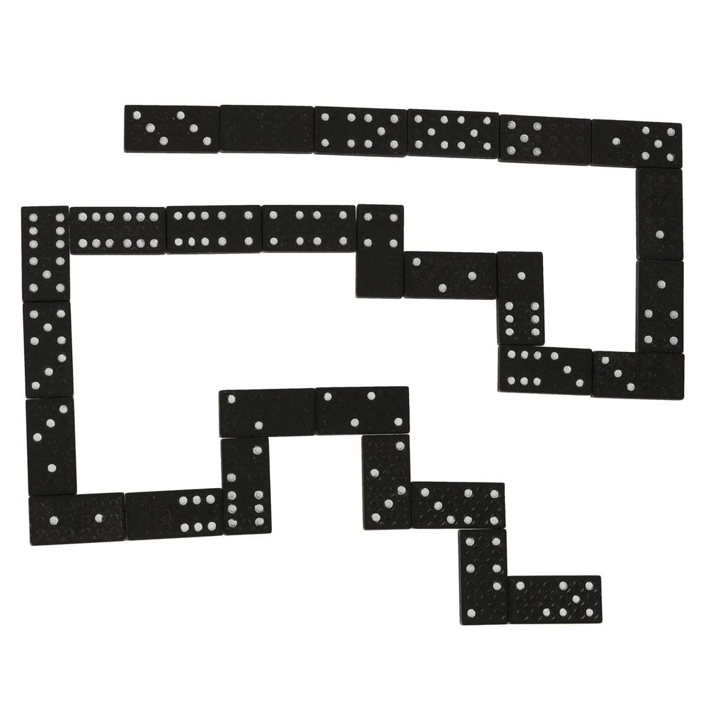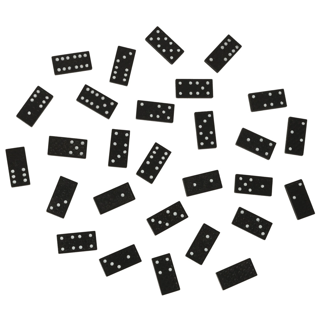 Melnā domino ar baltām punktiem (0–6) nodrošina lielisku skaitļu salasāmību un raitu spēles gaitu gan bērniem, gan pieaugušajiem.