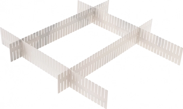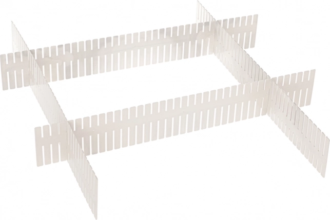 Starpsienu organizators ir ideāls risinājums kārtības uzturēšanai virtuvē, vannasistabā, guļamistabā, garāžā vai birojā. Tas ļauj efektīvi atdalīt priekšmetus, lai tie nesajauktos un nepārvietotos pa atvilktni.
