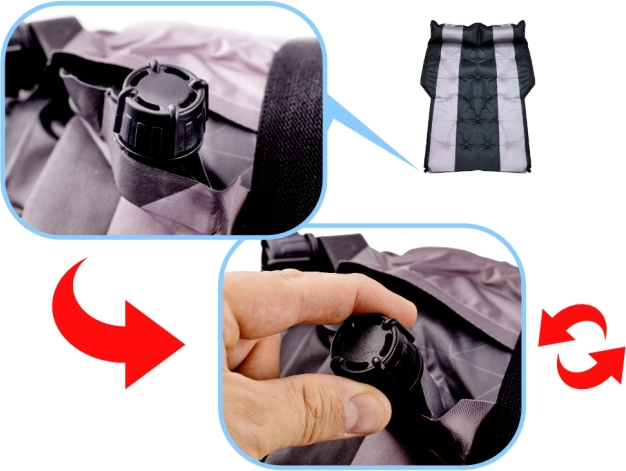 Praktisks vārsts ļauj ātri piepūst un izlaist gaisu. Atsevišķas daļas var piepūst ar atšķirīgu cietību atbilstoši jūsu vēlmēm.