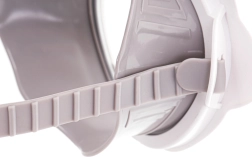 Mīksts silikons kombinācijā ar plastmasu nodrošina patīkamu piegulumu sejai un samazina ūdens iekļūšanu pie acīm un deguna.