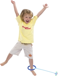 Spēle ir intuitīva: uzvelciet riņķi uz kājas, iegrieziet un ar otru kāju pārlēciet striķi ar bumbiņu. Lielisks izaicinājums gan bērniem, gan pieaugušajiem – kurš veiks vairāk apgriezienu vai griezīs visātrāk?