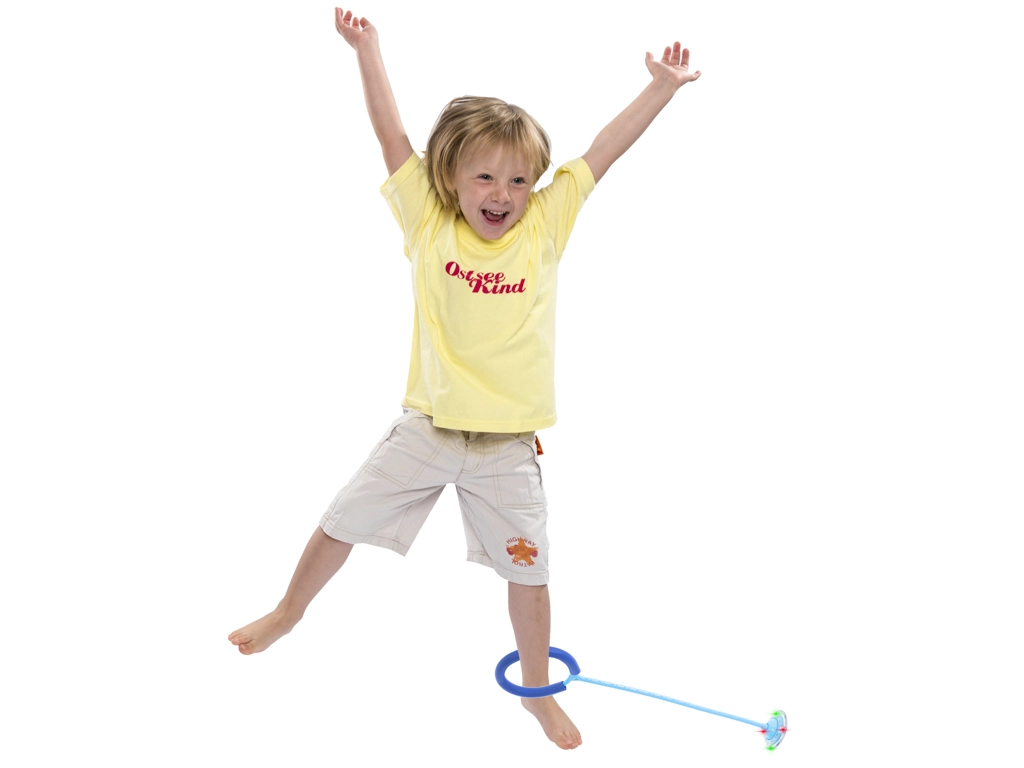 Izklaidējošs lēkāšanas kājas riņķis ar mirgojošām LED gaismām motivē bērnus kustēties un attīsta koordināciju, līdzsvaru un refleksus. Vienkārši uzvelciet riņķi uz potītes, iegrieziet un pārlēciet rotējošo bumbiņu – jo ātrāk griežas, jo spožāk spīd!