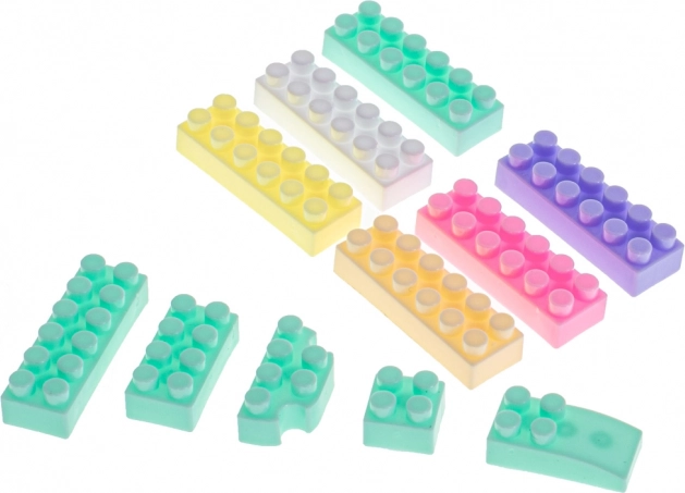 Skaistas pasteļkrāsas aicina bērnus spēlēties un ir lieliska dāvana. Klucīši ir iepakoti ērtā plastmasas kastē ar nodalījumiem, kas atvieglo glabāšanu un kārtošanu pēc krāsām.