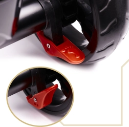 Brīvgaitas funkcija ļauj jebkurā brīdī pārņemt kontroli. Noņemamais vadotnes kāts atvieglo virzīšanu, līdz bērns iemācās mīt pedāļus.