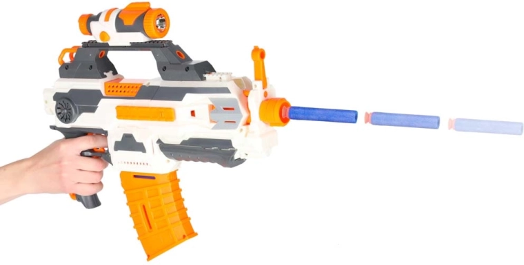 Spēle ar putu blāsteriem veicina komandas darbu, koordināciju un pirkstu motoriku aptveru ielādēšanas laikā. Lielais dāvanu iepakojums iepriecinās jau atverot – izklaide bērniem no 6 gadu vecuma un pieaugušajiem.