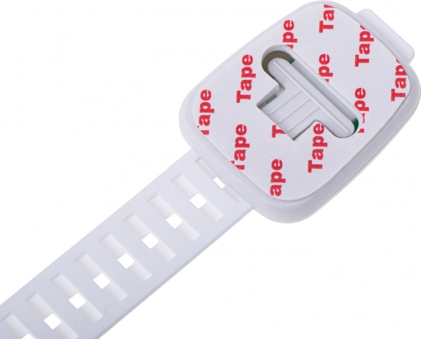Var izmantot dažāda tipa skapjiem un atvilktnēm, pateicoties viegli regulējamam slēdzim un elastīgai lentei.