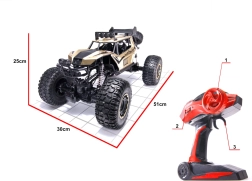 Izbaudiet dinamisku braukšanu ar iespaidīgu RC modeli 51 cm garumā. Pateicoties 4×4 piedziņai, lielajiem riteņiem un elastīgajai šasijai, tas viegli pārvar bedres, akmeņus un augstu zāli. Ergonomiskais pistoles tipa pults ērti ieguļ rokā un nodrošina precīzu vadību bezceļa apstākļos.