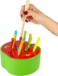 Magnētiskā nūjiņa un caurumiņi ābolā mudina bērnus uz precīzām kustībām, dabiski stiprinot acu-roku koordināciju un pacietību.