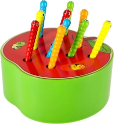 Atklājiet aizraujošu magnētisko spēli ābola formā, kas vienlaikus izklaidē un attīsta. Uzdevums ir ar magnētisko nūjiņu “noķert” kāpuriņus un uzmanīgi izvilkt tos no caurumiem – bet grūtākā variantā ielikt atpakaļ. Vienkāršā forma un dabiskie materiāli veicina bērnu patstāvību un zinātkāri.