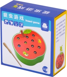 Izklaidējoša koka spēle bērniem, kurā ar magnētiskas nūjiņas palīdzību jānoķer košie kāpuriņi, kas paslēpušies ābolā. Attīsta sīko motoriku, acu-roku koordināciju, spēju koncentrēties un pacietību. Kvalitatīvs koka izpildījums ar magnētisku nūjiņu un 10 krāsainiem kāpuriņiem ir lieliski piemērots jēgpilnai spēlei, iedvesmotai no Montessori principiem.