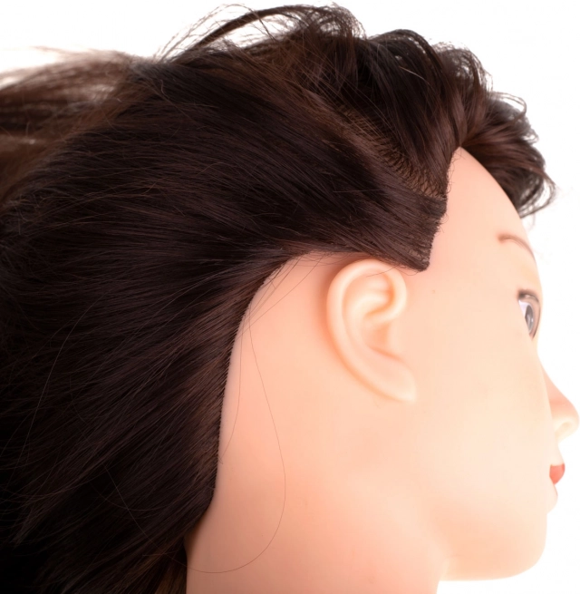Profesionāla frizieru treniņu galva ar gariem brūniem matiem ir ideāla griezumu, frizūru un termiskā ieveidošanas tehniku treniņiem. Mati ir ieklāti augšanas virzienā, tāpēc viegli ķemmējas, ir biezas un ļauj precīzi atdalīt šķipsnas. Lieliski piemērota iesācējiem un pieredzējušiem, kā arī neaizstājama kursos, sacensībās un demonstrācijās.