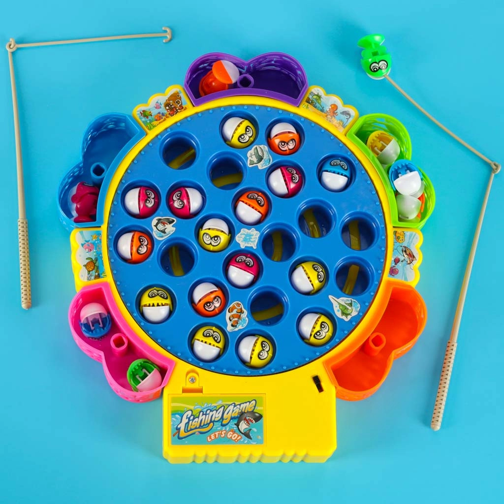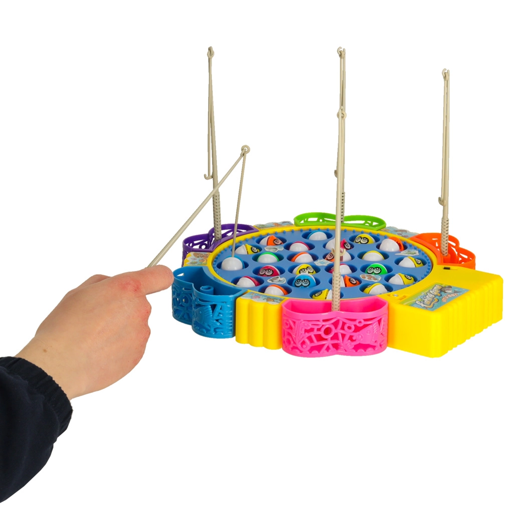 Jautra elektriskā zivtiņu ķeršanas spēle sniedz gan spriedzi, gan smieklus visai ģimenei. Apaļais dīķītis ar lēnu rotāciju iedarbina zivtiņas, kas atver un aizver mutītes – pareizs temps padarīs jūs par īstu makšķerēšanas čempionu. Pateicoties skaņas efektiem, spēles atmosfēra ir vēl jautrāka.