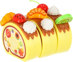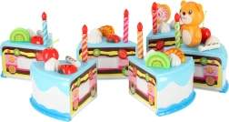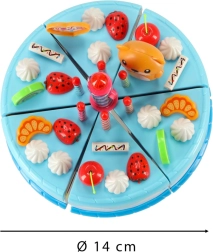 Sešas kūkas daļas, kas savienotas ar līplenti, bērni viegli “atgriezīs” ar plastmasas nazi un atkal savienos. Brīvi kombinējamas dekorācijas – augļi, svecītes, lācītis vai cepumi – aicina uz bezgalīgu radošu spēli. Pateicoties kompaktajam 14 cm diametram, kūku ērti turēt pat pašiem mazākajiem.