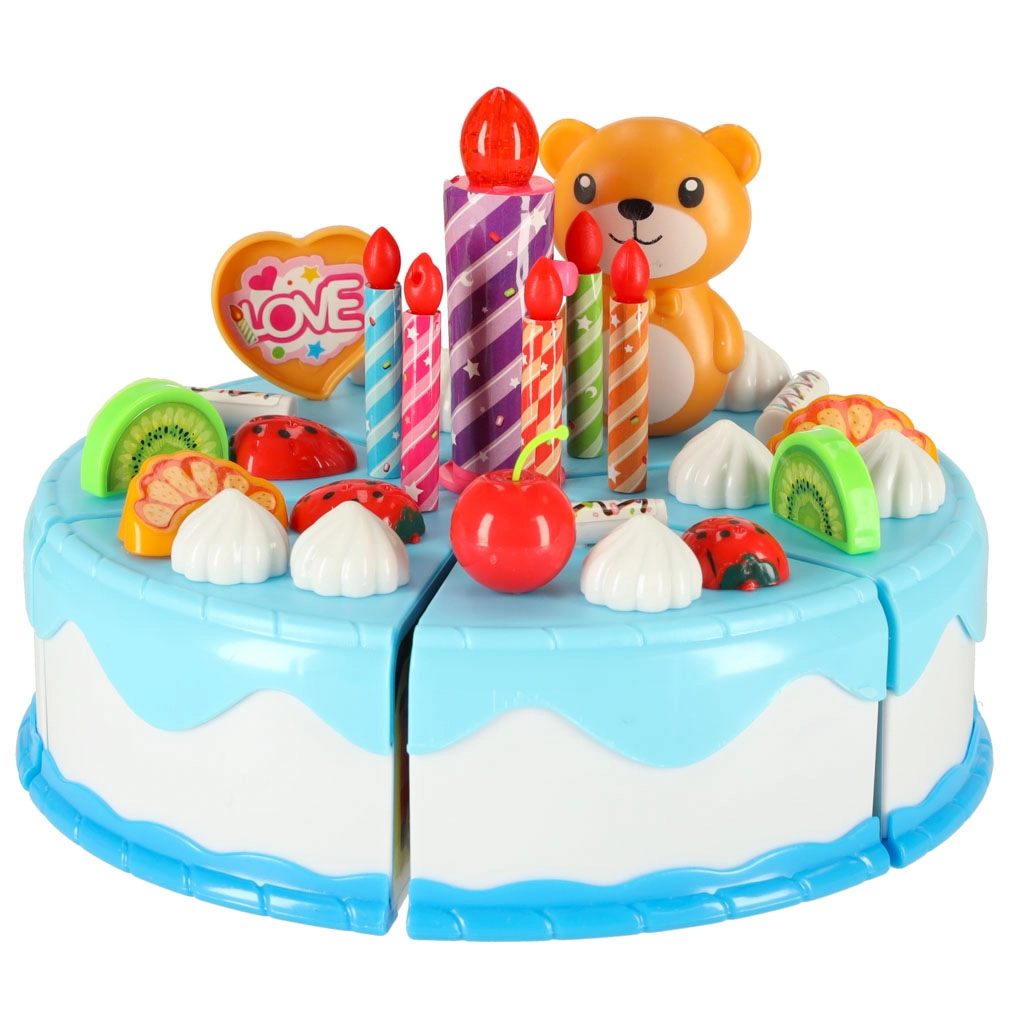 Krāsaina dzimšanas dienas kūka griešanai ar līplenti iepriecinās mazos konditorus un viesus tējas pēcpusdienā. Komplektā ir 80 detaļas, tostarp trauki, galda piederumi, augļi, cepumi un svecītes (viena spīdoša). Izturīgs ABS plastmasa, droši no 3 gadu vecuma, veicina iztēli un sīko motoriku.