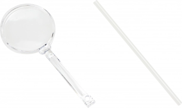 Komplektā iekļauta lupa un plastmasas kociņš/salmiņš, lai viegli veidotu atveres un detalizēti pētītu skudru ceļus.