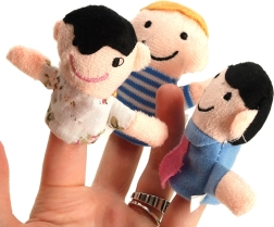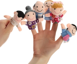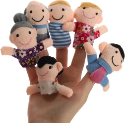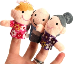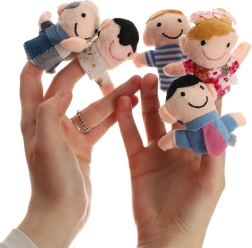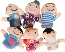 Pirkstu lellīšu komplektā ir sešas dažādās krāsās veidotas figūras, kas attēlo ģimenes locekļus: tēti, mammu, vectētiņu, vecmāmiņu, meitu un dēlu. Lellītes viegli uzvelkamas uz pirkstiem un ir veidotas tā, lai tās būtu jautras un vienkāršas lietošanā arī bērniem.
