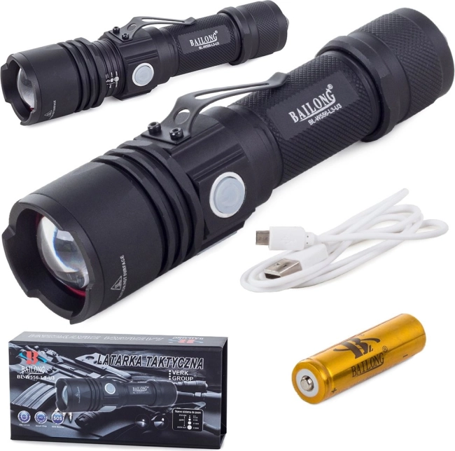 Robusta taktiskā lukturīte BAILONG ar CREE XM‑L T6 diožu moduli nodrošina līdz pat 400 m starojuma distanci, plūdenu tālummaiņu un USB uzlādi. Pateicoties sānu gaismai, trim režīmiem (100 %, 50 %, stroboskops) un izturīgam aviācijas alumīnijam, tā ir gatava dienestam, medībām un ikdienas lietošanai.
