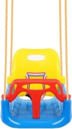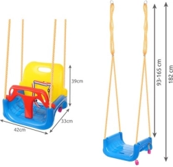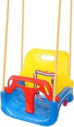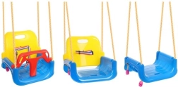 Šīs košās 3‑in‑1 šūpoles ir lieliska izvēle gan mazuļiem, gan lielākiem bērniem. Konfigurācijā ar T‑stieni un augstu atzveltni tās droši šūpo pašus mazākos, vēlāk var noņemt priekšējo un aizmugurējo daļu un pārvērst par klasisku sēdekli. Drošības siksnas ar regulāciju stingri notur bērnu, savukārt sēdekļa pretslīdes struktūra novērš noslīdēšanu arī aktīvas rotaļas laikā.