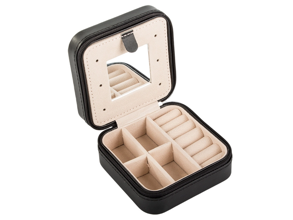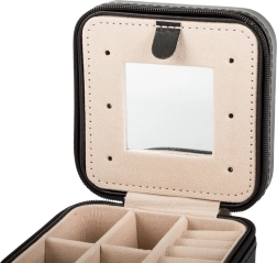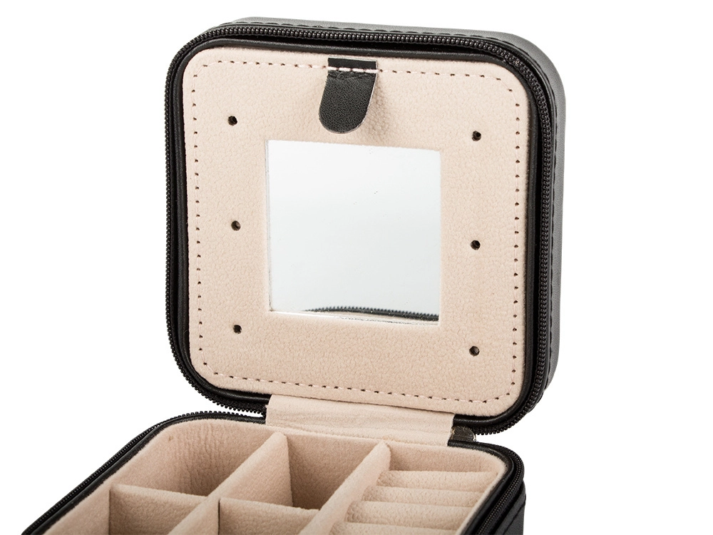 Izturīga konstrukcija, mīksta polsterācija un droša rāvējslēdzēja aizdare pasargā jūsu rotas no bojājumiem un nozaudēšanas. Pateicoties kompaktajiem izmēriem 10 × 10 × 5 cm, tā viegli ietilpst rokassomā vai rokas bagāžā – lieliska arī kā gaumīga dāvana.
